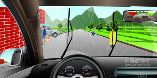 | 如图所示,驾驶机动车在雨天行驶遇到这种情形时,以下做法正确的是什么? | |||||||||