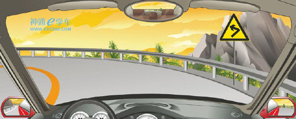 | 右侧标志警告前方道路是向左连续弯路。 | |||||