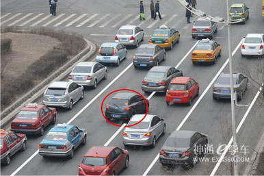 | 如图所示,红圈标注的深色车辆的做法是违法的。 | |||||