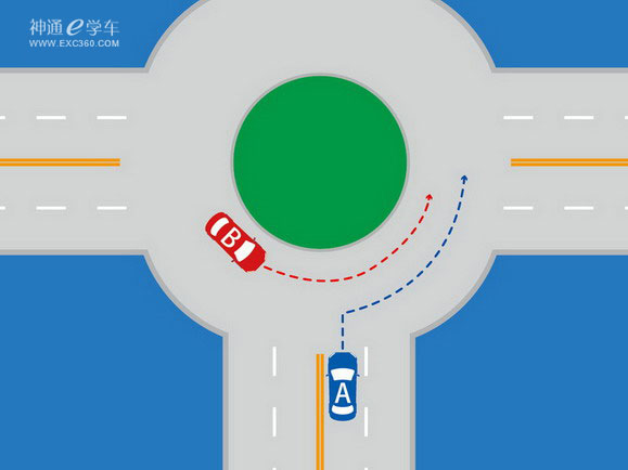 | 如图所示,在这种情况下,A车应该让路口内的B车先行。 | |||||