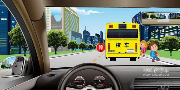 | 如图所示,驾驶机动车遇到校车停车上下学生时,以下做法正确的是什么? | |||||||||
